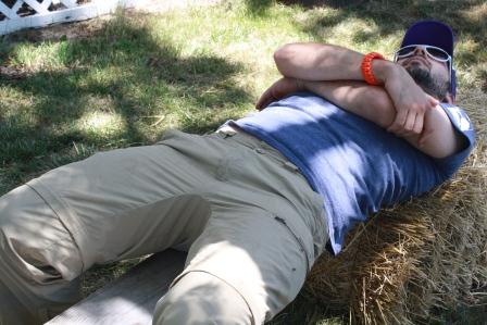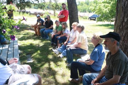 - Spending time at his family’s organic farm where we were treated to organic hot dogs and such, learned about organic farming from Noah’s mother Nancy Vogelsberg-Busch, took a bird watching tour with Dr. John Quinn from the University of Nebraska at Lincoln, and stopped to eat some berries, look for some russian thistle weevils, and do a bit of bee handling…