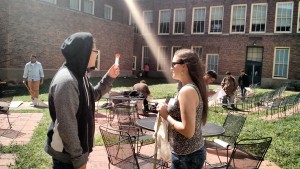 I reached out to about a dozen biology graduate students at KU and asked if they would be interested in partnering with me for a semester-long project. Our goal is to design and plant a pollinator garden in one of the courtyards at Wyandotte High School. The grad students have been coming to my class every other Friday to work with my students on the garden project. Their lessons have covered a range of topics from Colony Collapse Disorder, to ways of measuring biodiversity. My students have researched native plants that attract pollinators and have made scale drawings